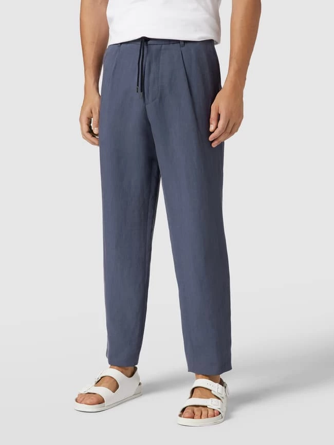Die Hose von BOSS ist aus einem Lyocell-Leinen-Mix gefertigt und gerade geschnitten. Sie zeigt sich in melierter Optik mit Label-Details und elastischem Bund mit Tunnelzug.