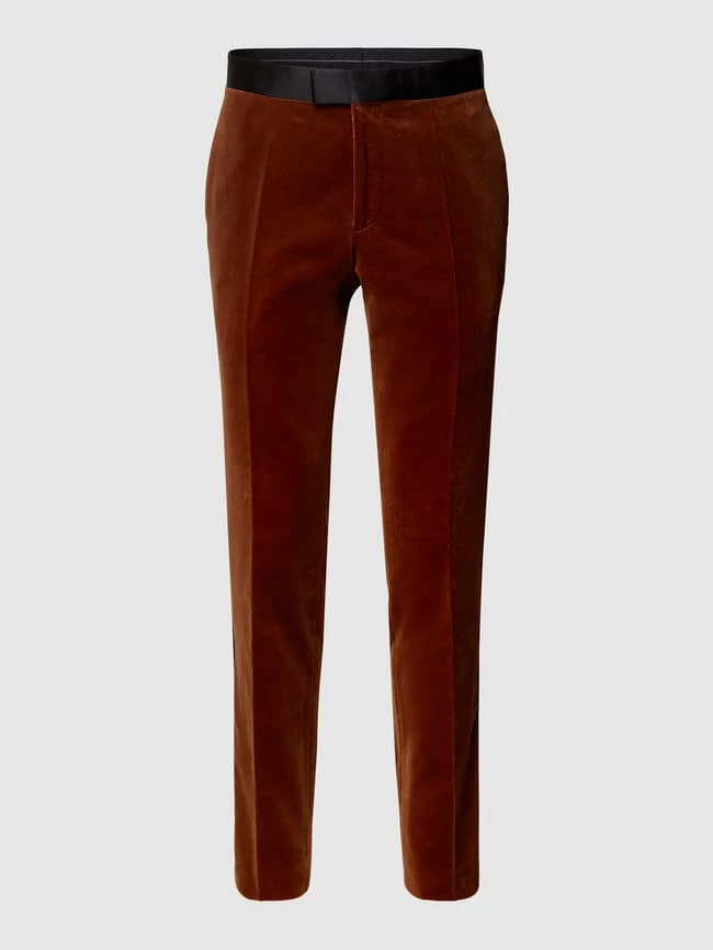 Die Anzughose von BOSS ist aus reiner Baumwolle gefertigt und im Slim Fit gehalten. Sie kommt in Samt-Optik mit Kontrastbesatz, französischen Eingrifftaschen und Leistentaschen am Gesäß.
