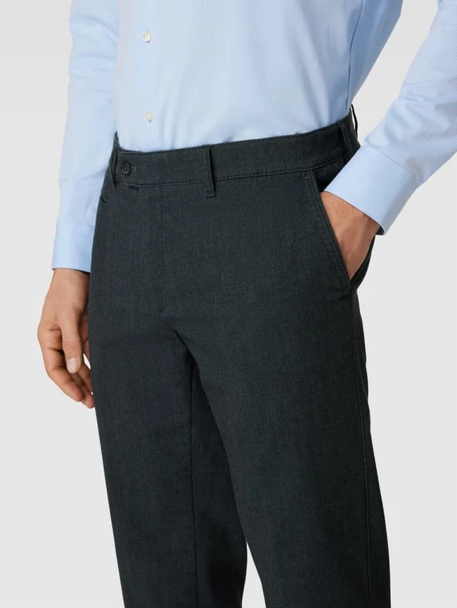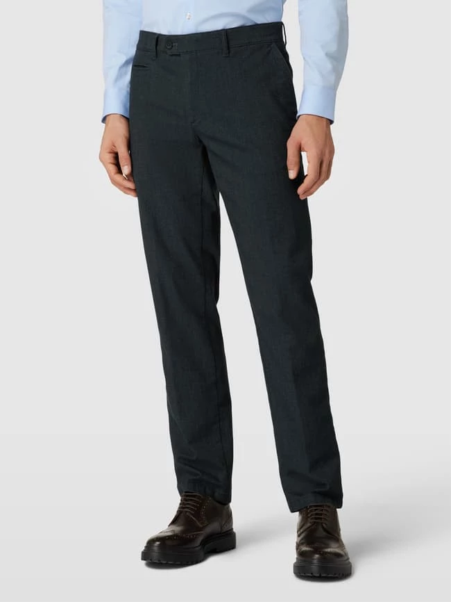 Die Anzughose von BRAX ist aus einem Baumwoll-Mix mit Stretch-Anteil gefertigt und gerade geschnitten. Sie kommt in melierter Optik mit seitlichen Eingrifftaschen und Knopf- und Reißverschluss.