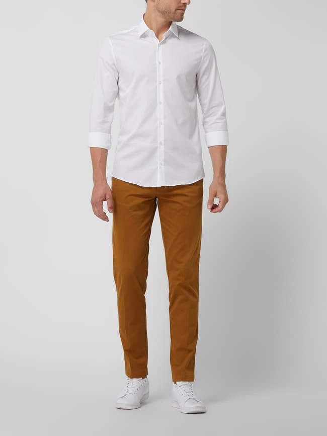 Die Chino von CINQUE ist aus einem Baumwoll-Elasthan-Mix gefertigt. Sie kommt in gerader Passform mit französischen Eingrifftaschen und Paspeltaschen am Gesäß. Der Vorteil von Chinos? Sie sind zeitlos und kaschieren kräftige Oberschenkel.