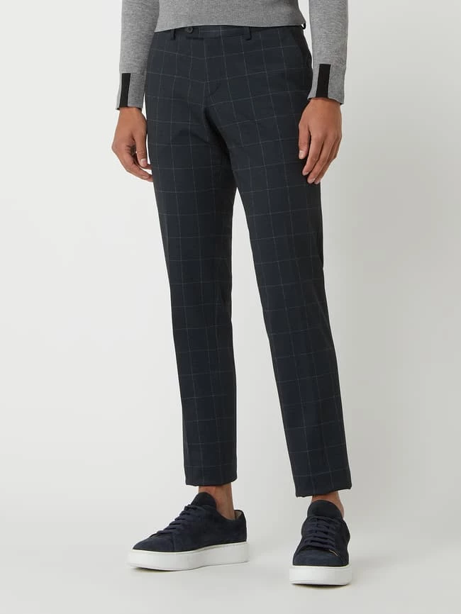 Die Anzughose von DIGEL ist aus einer Materialmischung mit Viskose- und Stretch-Anteil gefertigt und im Extra Slim Fit gehalten. Sie kommt mit Karomuster, Hakenverschluss und französischen Eingrifftaschen.
