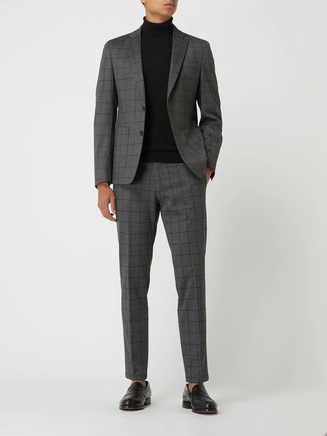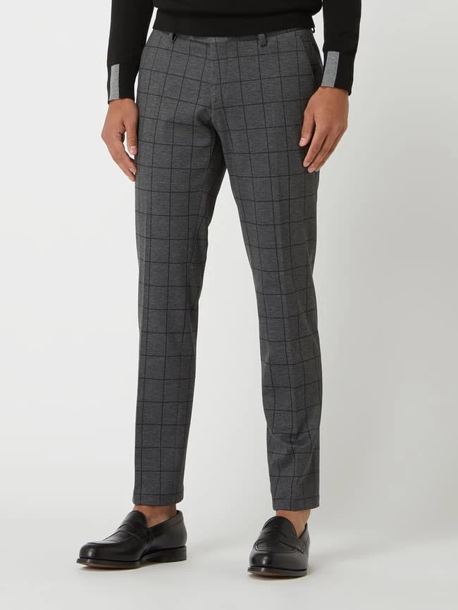 Die Anzughose von DIGEL ist aus einer Materialmischung mit Viskose- und Stretch-Anteil gefertigt und im Extra Slim Fit gehalten. Sie kommt mit Karomuster, Hakenverschluss und französischen Eingrifftaschen.