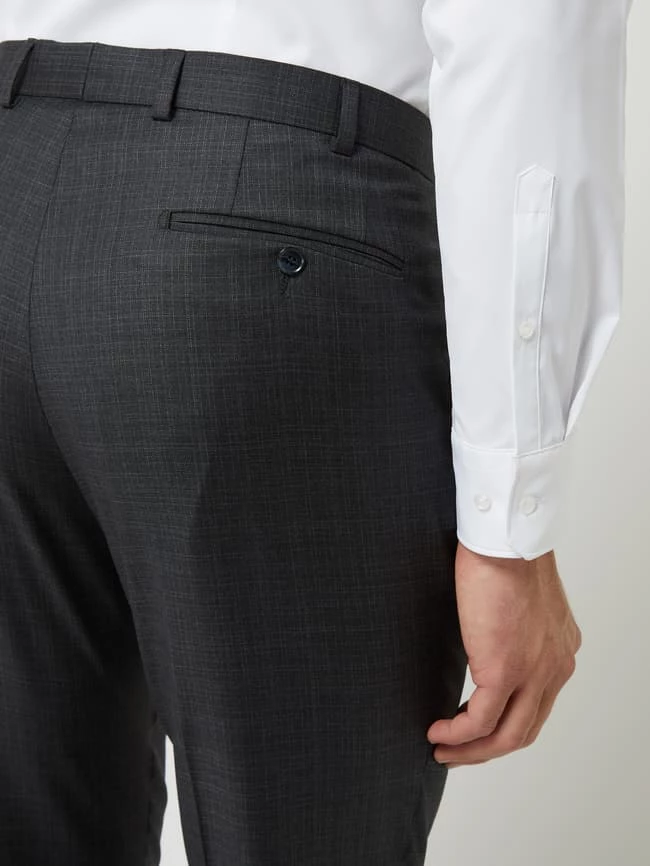 Die Anzughose von DIGEL ist aus reiner Schurwolle gefertigt. Sie kommt im Modern Fit mit feinem Webmuster, französischen Eingrifftaschen und geknöpften Paspeltaschen am Gesäß.