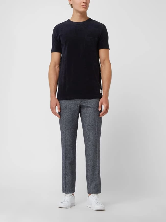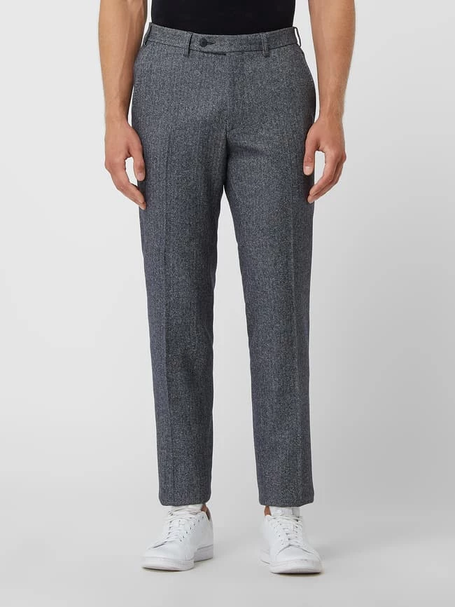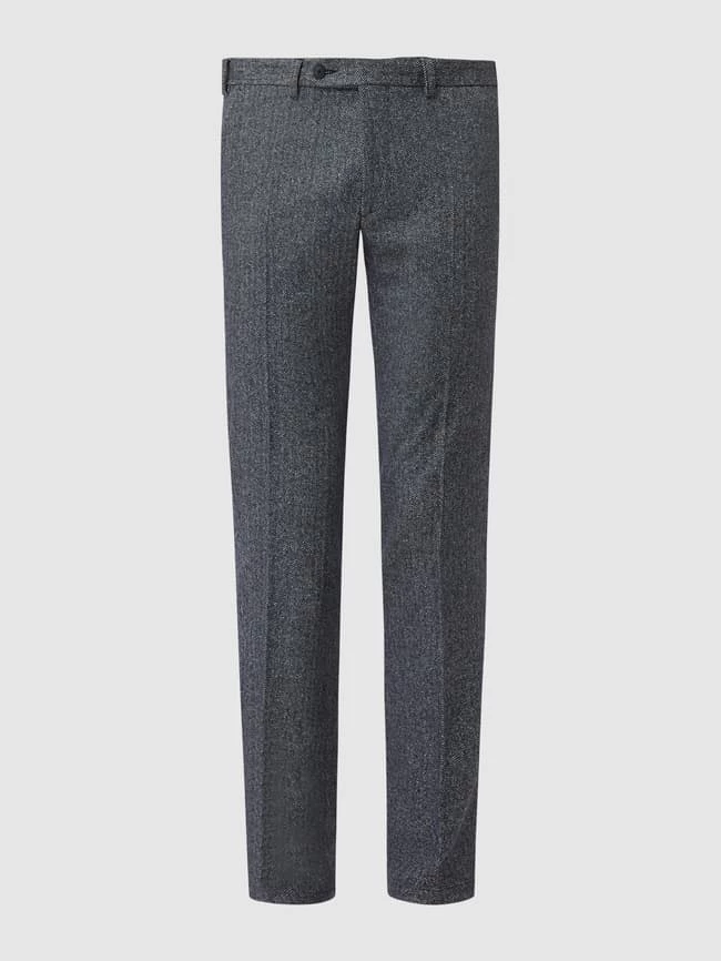 Die Anzughose von DIGEL ist aus einer Schurwollmischung mit Seide- und Stretch-Anteil gefertigt. Sie zeigt sich im Modern Fit mit Fischgrat-Dessin, französischen Eingrifftaschen und geknöpften Leistentaschen am Gesäß.