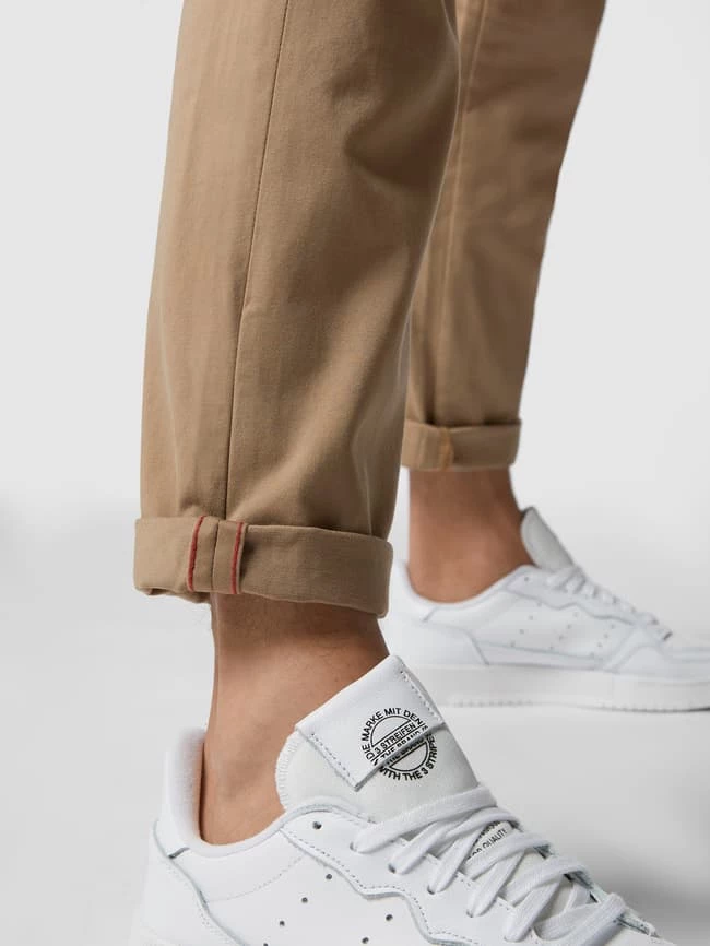 Die Chino von JACK & JONES ist aus einem Baumwoll-Elasthan-Mix gefertigt und schmal geschnitten. Sie kommt mit französischen Eingrifftaschen, Münztasche und Paspeltaschen.