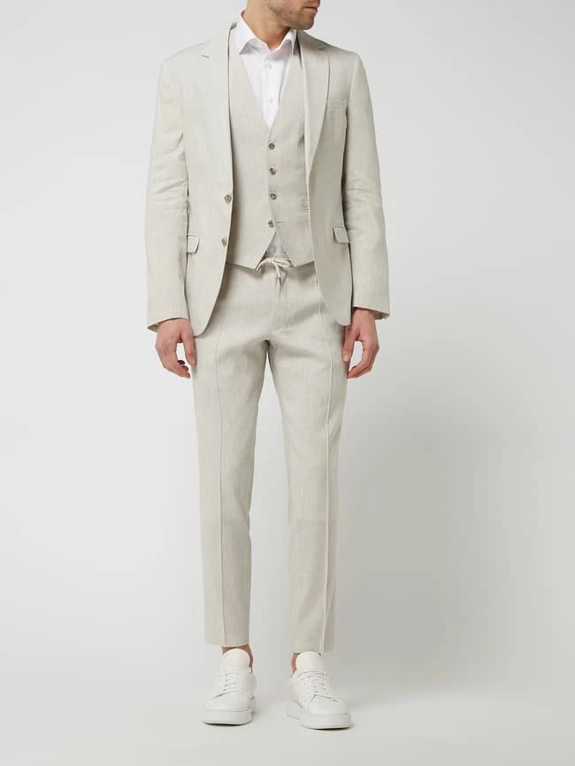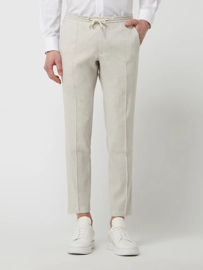 Die Jogpants von MCNEAL ist aus einer Leinenmischung mit Viskose- und Stretch-Anteil gefertigt. Sie kommt in gerader Passform mit Streifenmuster, Tunnelzug und französischen Eingrifftaschen.