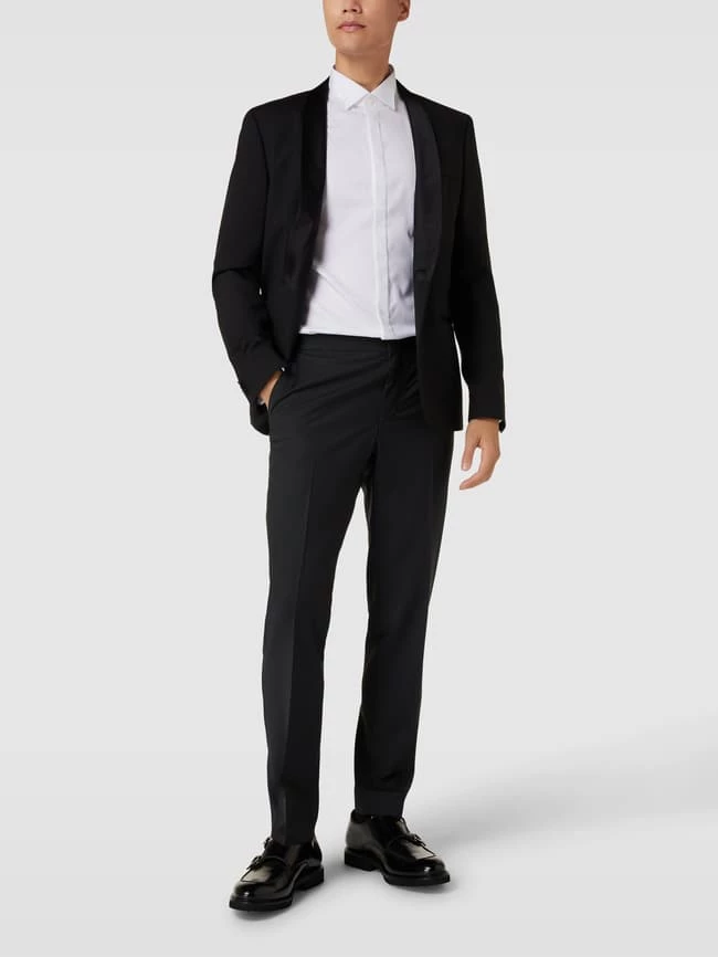 Die Anzughose von Pierre Cardin ist aus einem Material-Mix mit Schurwoll-Anteil gefertigt und gerade geschnitten. Sie zeigt sich im unifarbenen Design mit Label-Patch.