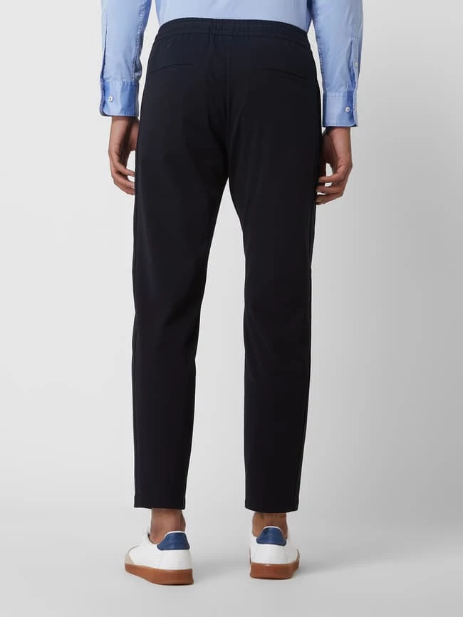 Die Jogpants von Windsor ist aus einer Materialmischung mit Viskose- und Stretch-Anteil gefertigt. Sie kommt mit schmal zulaufendem Bein, Reißverschlusstaschen und fixierten Bügelfalten.